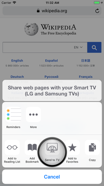 يتوفر Send To TV لنظام التشغيل iOS 12.1.2 والإصدارات الأحدث. الإصدار الحالي من التطبيق هو 2.5.0 ، ويمكنك الحصول عليه باللغة الإنجليزية فقط.